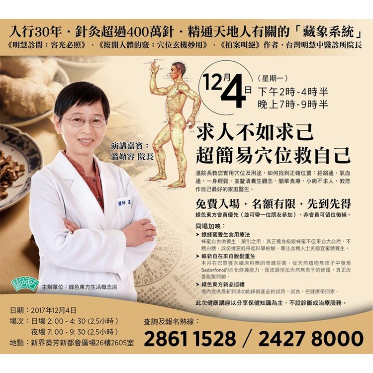 溫院長教您實用穴位及用途,如何找到正確位置,經絡通,氣血通,一身輕鬆。並釐清養生觀念,簡單食療,小病不求人,教您作自己最好的家庭醫生。